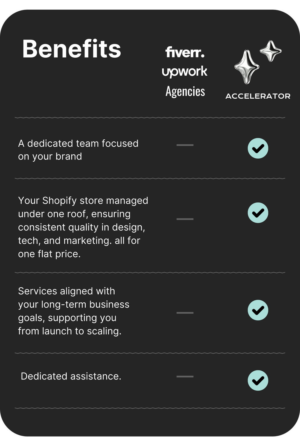 Sometimes, all we need is someone to hold our hand and guide us. Agencies and eCommerce platforms often lack the personal touch that first-time eCom business owners need. This is where we come in.